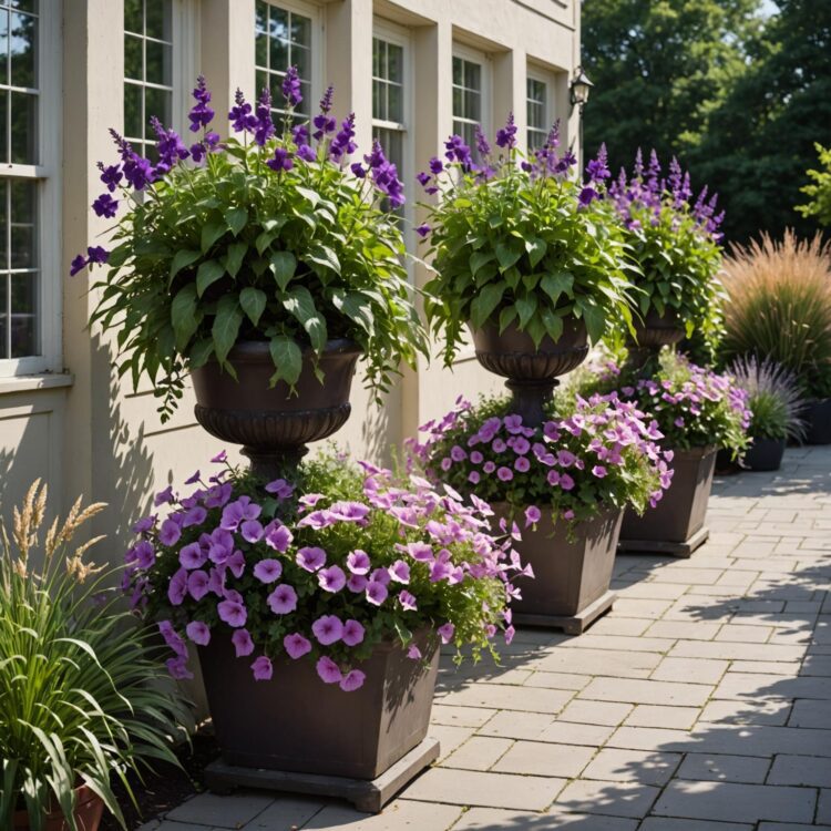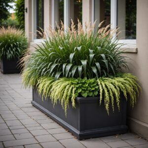 Trawy ozdobne dodają lekkości i ruchu, a przy tym nie konkurują z hortensjami o uwagę, tylko je podkreślają. Przy niższych odmianach dobrze działają delikatne kępy do 40–60 cm wysokości, przy wyższych można sięgnąć po trawy sięgające nawet 1,2–1,5 m, sadzone w tle lub po bokach. Przykładowe zestawienia to: